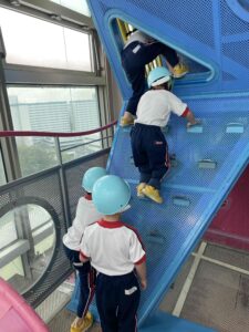 幼児クラスのお友だちは、遊具の塔にチャレンジ!!